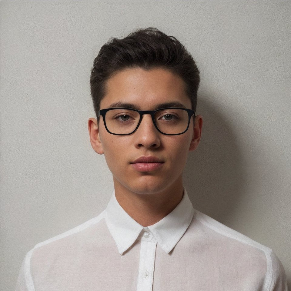 This large shallow quadra shape has a keyhole bridge. The simple design looks smart and modern. This frame has a wide fit which makes it suitable for a larger face.